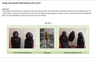 Docent Marieke Bouman en haar klas van de IMC Weekendschool in Utrecht deden mee aan de wedstrijd en kregen als reactie van de jury: Moendianen zich voort? Het antwoord wordt op originele wijze uitgewerkt en uitgebeeld in de nieuwe bron. Het blijkt dat Moendianen zich voortplanten op een manier die we nog niet kennen op Aarde. Het blijkt ook dat de Moendianen hun eigen planeet nog niet goed kennen, wat de interessante mogelijkheid geeft dat er nog meer eilanden zijn met andere levensvormen. De inzending is zeer creatief en humoristisch uitgebeeld door de leerlingen zelf." De leerlingen van 10-13 jaar winnen hiermee een dag niet alleen voor zichzelf, maar waaraan ook leerlingen van de IMC Weekendschool uit Amsterdam Noord zullen deelnemen.